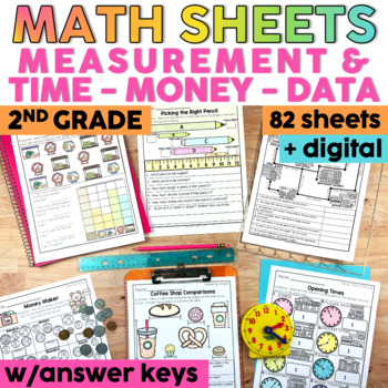 2nd Form Measurement, Time, Money, & Data Worksheets