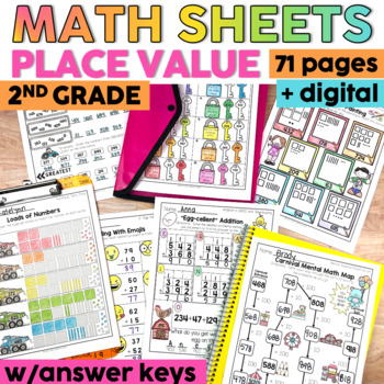 Enjoy well-nigh 70 pages of skills from number forms, skip counting, counting base ten blocks, and even make up one's mind the value of the underlined digit. Whether it'southward your first-solar day didactics place value or you've already dived into the unit you tin can notice something that will aid bring some value to your place value lessons!